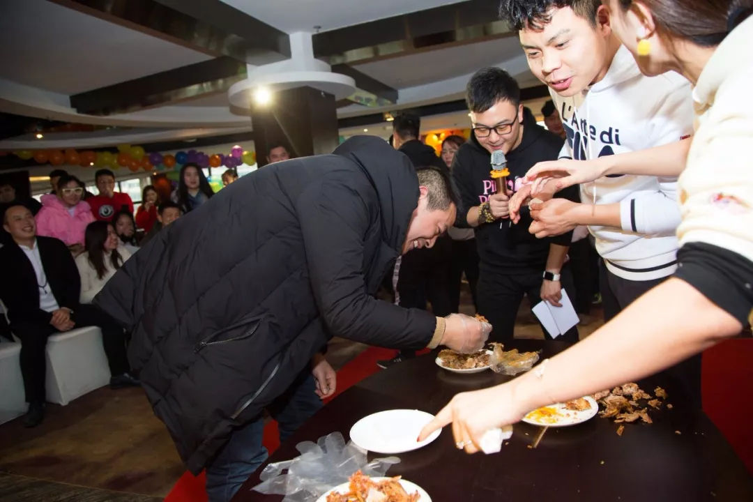 盛典中,同樣少不了多個抽獎和游戲節(jié)目,吃西瓜、英雄啤酒杯、啃兔頭等游戲眾人玩得風生水起、歡樂開懷。